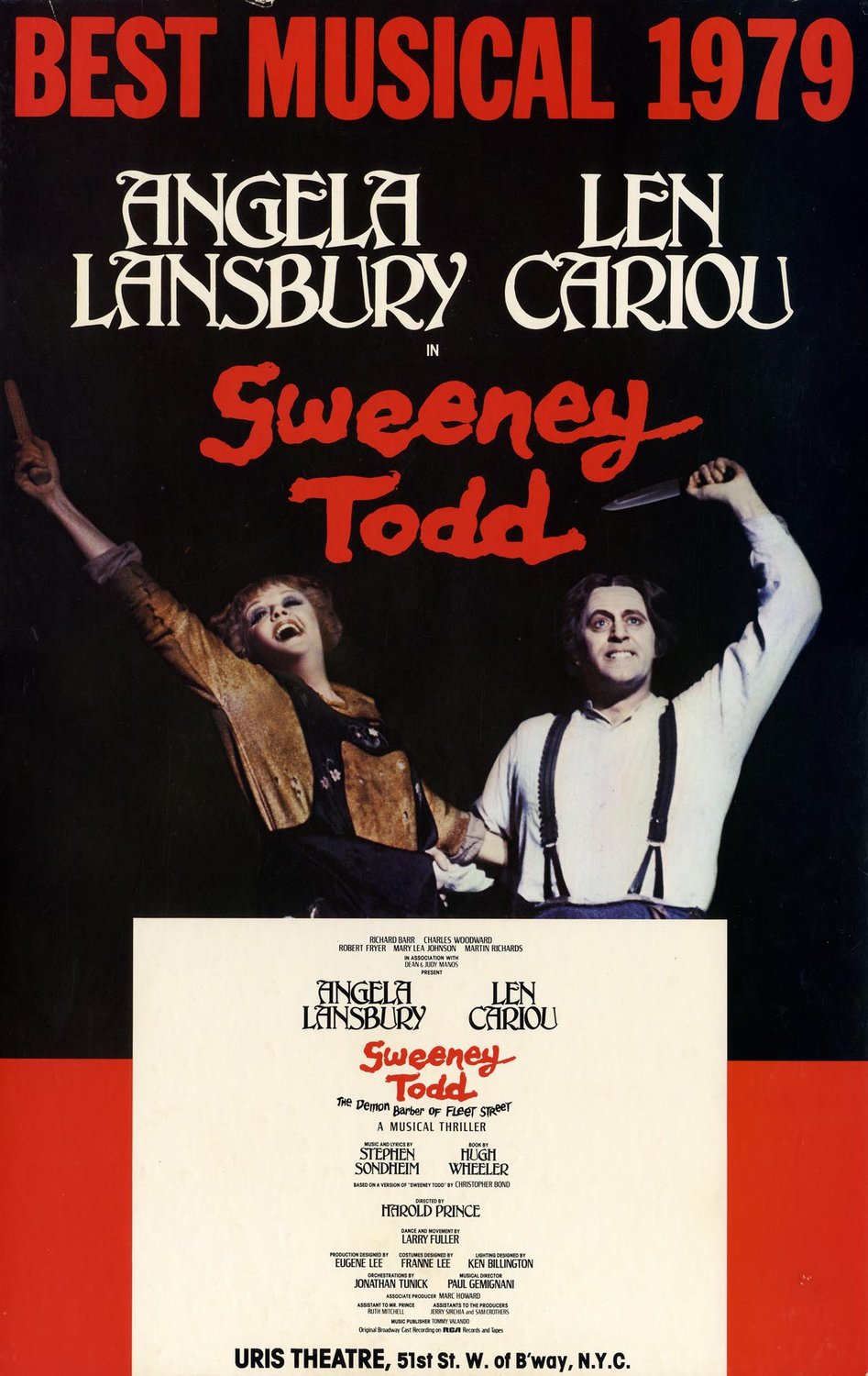 Window card with photo of Len Cariou and Angela Lansbury.