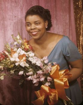 Carol Brice receiving flowers after a recital.