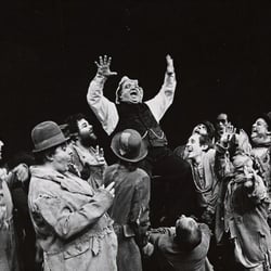 No musical numbers were listed in the playbill. We have included a list of musical numbers based on the titles in the published script of the Manheim-Willett translation (which was used in this production, although with differences from the published version) and the cast recording of the production. We have adjusted song sequence and performers based on what is known to have been done in the production.