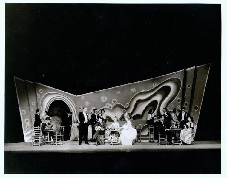 J. Harold Murray (standing center), Hugh O'Connell, Katherine Carrington, and Mary Boland (seated at table)