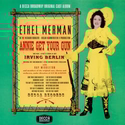 Although the booklet with the 2000 CD issue on Broadway Decca lists Broadway cast members Merman, Middleton, William O'Neal and Marty May as singing "There's No Business Like Show Business," that is clearly not correct. Several solo voices are heard and a large chorus, but it does not sound like any of those people is among them. The original issue on Decca 78s in 1946 listed the performers of the song as being the "Annie Get Your Gun Chorus and Orchestra," but it is not certain that it is the show chorus or if it might be a Decca studio chorus.