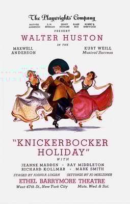 A hurricane on Sept. 21, 1938, caused massive flooding in Hartford, Connecticut, where the pre-Broadway tryout was scheduled to start that week. As a result, the first public performance was delayed for several days. We don't know the date on which the opening was originally scheduled, but it ended up occurring on Sept. 24, 1938. Because the production was scheduled to open the following Tuesday in Boston, it played only one performance in Hartford, with the cast managing to get there by a bus from New Haven, after having gotten to New Haven from Boston by train. As far as we can tell, the production team, cast and crew went to Boston to prepare for the opening there, probably expecting there would be no performances in Hartford. Indeed, it seems as if the orchestra may not have made it to Hartford and that the performance may have been accompanied very simply, perhaps just on piano.