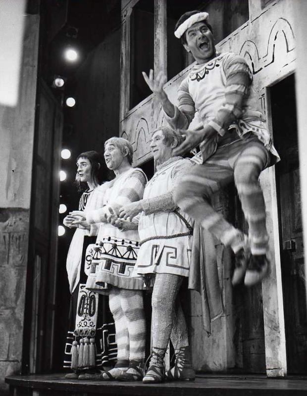 Danny Dayton (succeeded John Carradine), Jack Gilford, Frank McHugh (succeeded David Burns), and Dick Shawn (succeeded Zero Mostel)