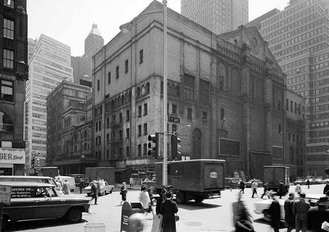 A 1966 view of the back side of the building from 7th Avenue and 40th Street.
